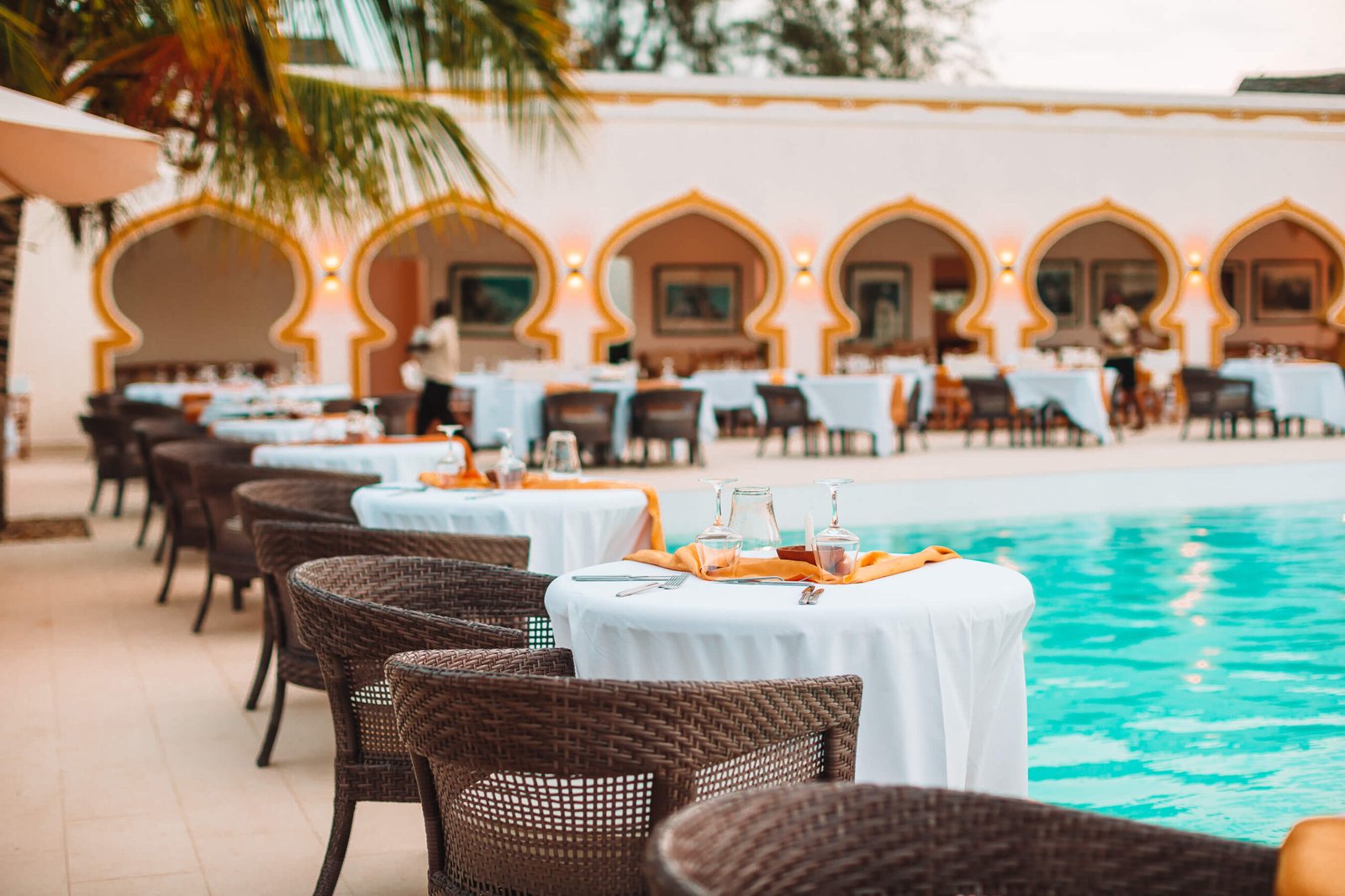 Our resort features multiple dining options, including a fine dining restaurant, casual poolside lounges, and in-room dining. We offer a variety of international cuisines and locally inspired dishes, all curated by our team of renowned chefs.
